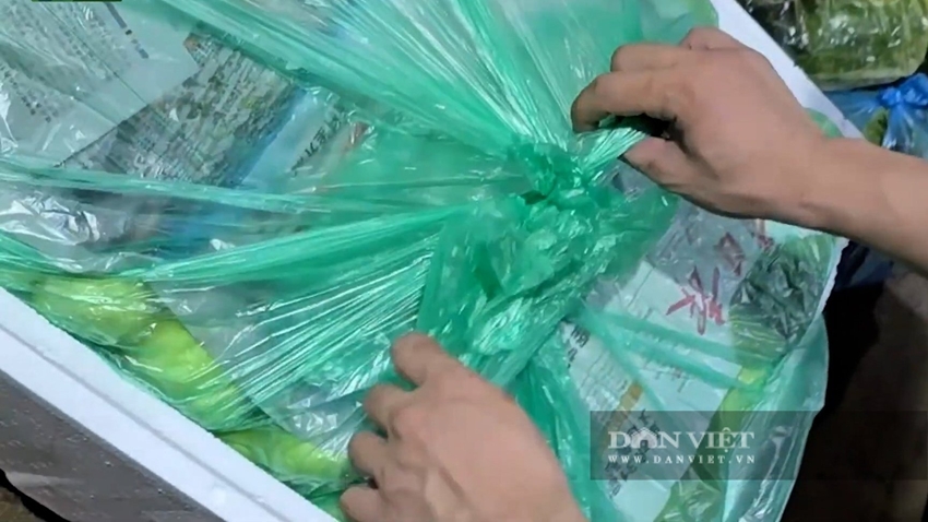 Thế nhưng, một số mặt hàng nam thanh niên được cho là con trai bà Thuận (Chanh) chở vào như cải thảo, cải chíp… vẫn còn nguyên lớp băng dính và giấy báo chữ Trung Quốc bọc bên trong.