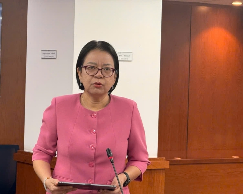 Bà Võ Thị Trung Trinh, Giám đốc Trung tâm Chuyển đổi số TP Hồ Chí Minh thông tin tại buổi họp báo.