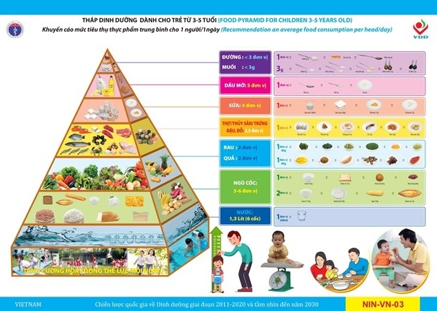 | Sử dụng tháp dinh dưỡng hàng ngày, phù hợp cho sức khỏe. (Ảnh: Vdd/BYT) |