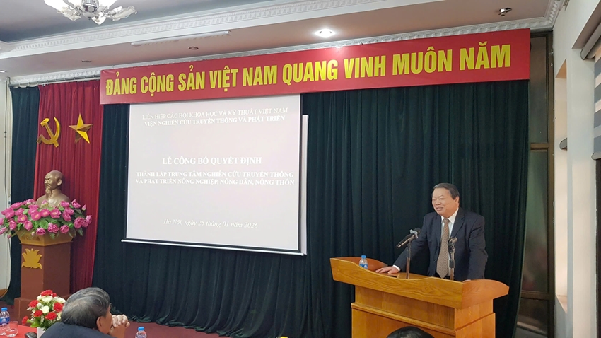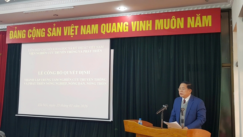 Sáng ngày 25/01/2026, tại Hà Nội, Viện Nghiên cứu Truyền thống và Phát triển (trực thuộc Liên hiệp các Hội Khoa học và Kỹ thuật Việt Nam) đã tổ chức Lễ công bố Quyết định thành lập "Trung tâm nghiên cứu Truyền thống và Phát triển Nông nghiệp, Nông dân, Nông thôn".