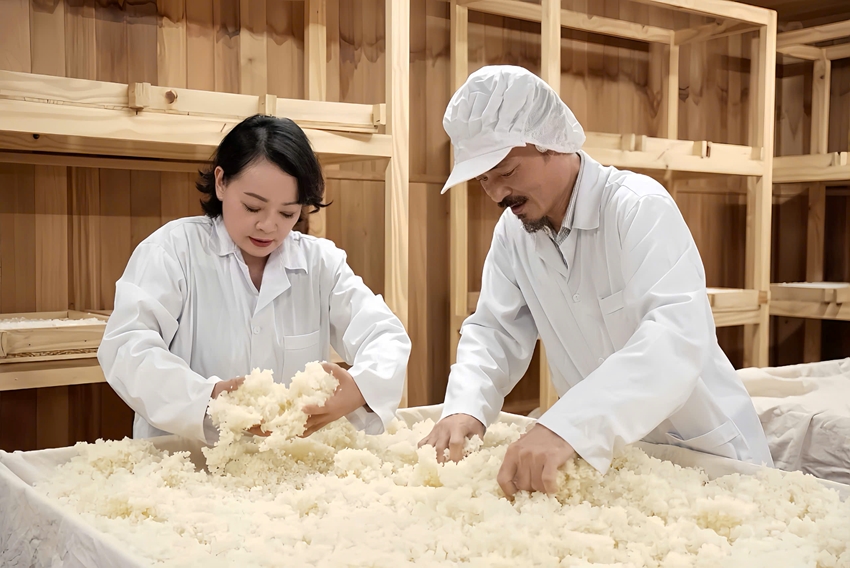 Trà My học từng bước trực tiếp từ chuyên gia trở về từ Nhật Bản: chọn giống men chuẩn Nhật Bản, kiểm soát nhiệt, ẩm nghiêm ngặt, đảo men đúng kỹ thuật, theo dõi từng giờ trong suốt quá trình lên men.