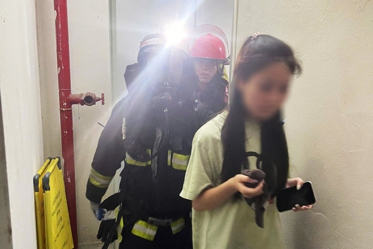 | Lực lượng chức năng hướng dẫn người dân di chuyển xuống tầng 1. Ảnh: CACC |