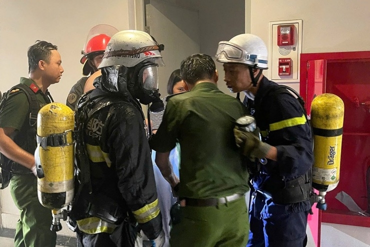 Tại hiện trường, lực lượng chức năng xác định đám cháy xảy ra tại căn hộ 604 thuộc tầng 6 của chung cư và nhanh chóng cử nhiều mũi cán bộ, chiến sĩ tham gia dập lửa, tìm kiếm người mắc kẹt.