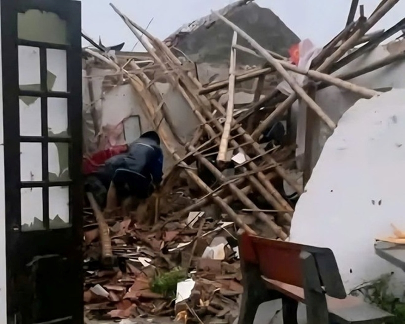 Tại xã Hải Anh, cơn lốc làm gãy 30 cột điện, sập một số nhà, 1 người tử vong.