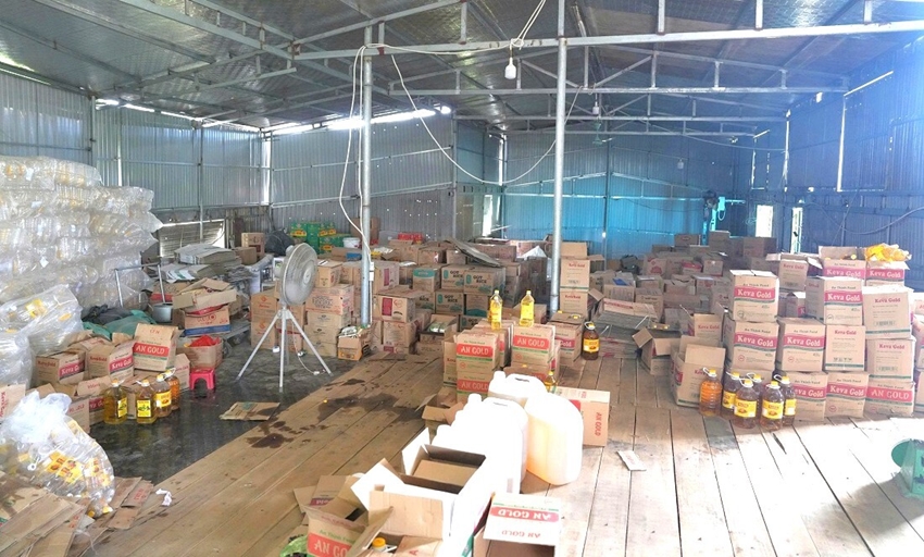 Bên trong Công ty TNHH thương mại An Thịnh Food thời điểm Phòng Cảnh sát Kinh tế kiểm tra.
