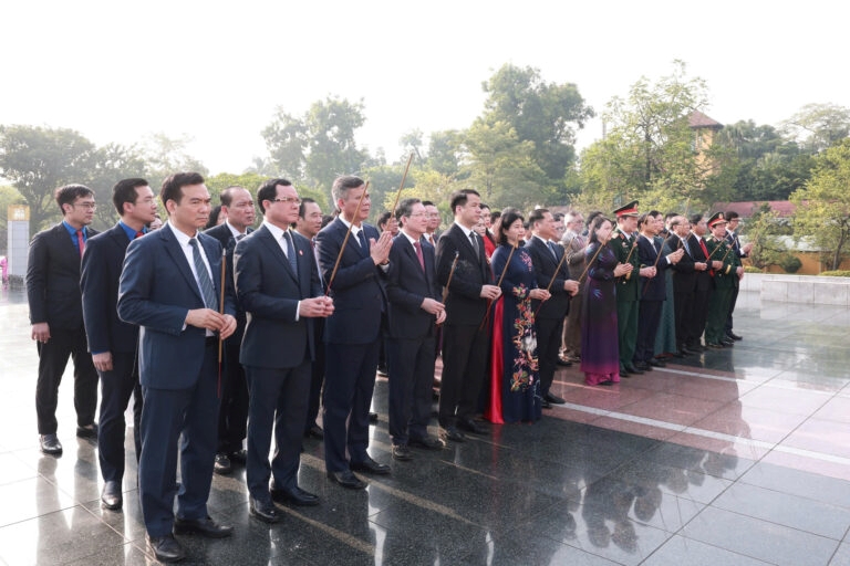 Trước anh linh các anh hùng liệt sĩ, Đoàn đại biểu dành một phút mặc niệm, bày tỏ lòng tưởng nhớ những người con ưu tú của dân tộc đã không tiếc máu xương, dũng cảm hy sinh vì sự nghiệp đấu tranh giải phóng dân tộc, vì độc lập tự do của Tổ quốc.