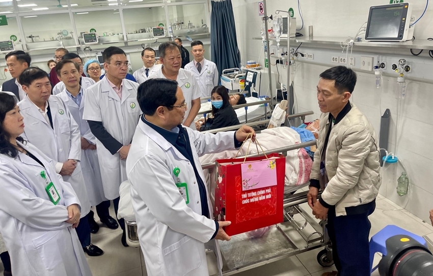 Thủ tướng Phạm Minh Chính thăm, tặng quà, chúc Tết động viên người bệnh đang điều trị tại Bệnh viện Hữu nghị Việt Đức. (Ảnh: Trần Hải)