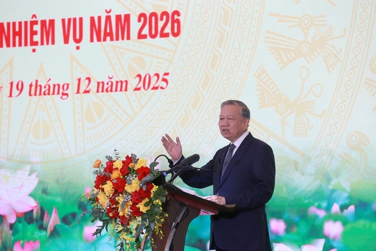 Hôm nay, tôi cùng các đồng chí Bộ Chính trị, Ban Bí thư, lãnh đạo các cơ quan Trung ương vui mừng đến dự "Hội nghị toàn quốc tổng kết công tác Tuyên giáo và Dân vận của Đảng năm 2025, triển khai nhiệm vụ năm 2026" - Hội nghị tổng kết công tác năm đầu tiên sau khi hợp nhất Ban Tuyên giáo Trung ương và Ban Dân vận Trung ương, cơ quan tham mưu chiến lược về công tác Tuyên giáo và Dân vận của Đảng. Đặc biệt, hội nghị hôm nay diễn ra vào thời điểm toàn Đảng, toàn dân và toàn quân đang nỗ lực hoàn thành các chỉ tiêu, mục tiêu nhiệm kỳ của Đại hội XIII, tiếp tục hoàn thành tốt công tác chuẩn bị tổ chức Đại hội Đại biểu toàn quốc lần thứ XIV của Đảng.