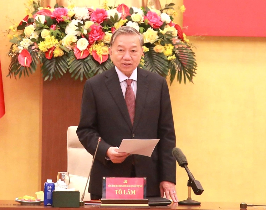 | Tổng Bí thư Tô Lâm phát biểu chỉ đạo tại hội nghị. (Ảnh: H.Hòa/ĐCSVN) |