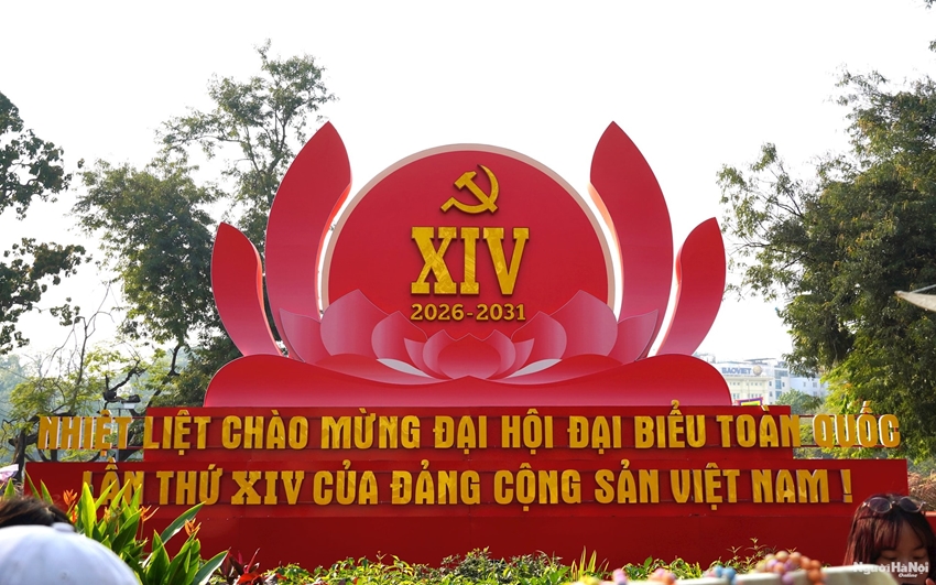 | Sắc đỏ băng rôn, biểu ngữ "Nhiệt liệt Chào mừng Đại hội Đại biểu toàn quốc lần XIV của Đảng Cộng Sản Việt Nam" ngập tràn trên những tuyến đường của Thủ đô Hà Nội. (Ảnh: NHN) |