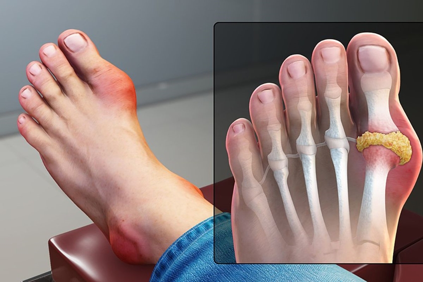 | Gout (gút) thường xảy ra ở ngón chân cái |