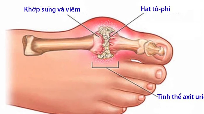 Cảnh báo: Sự im lặng sau cơn đau không có nghĩa là bệnh đã khỏi. Nếu không kiểm soát, những "mảnh thủy tinh" kia sẽ âm thầm tích tụ thành các khối u sần sùi gọi là hạt Tophi. Chúng xuất hiện ở vành tai, khuỷu tay, gân gót, gây biến dạng khớp vĩnh viễn và hình ảnh "đột lỗ" đặc trưng trên phim X-quang.