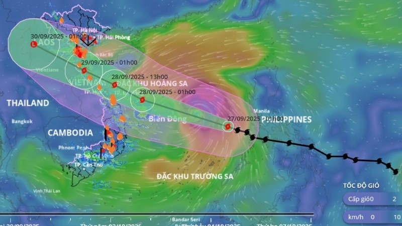 Dự báo Hướng di chuyển và đường đi của cơn Bão số 10 (Bualoi) lúc 6 giờ sáng 27/9. (Ảnh: Hệ thống Giám sát thiên tai Việt Nam). |