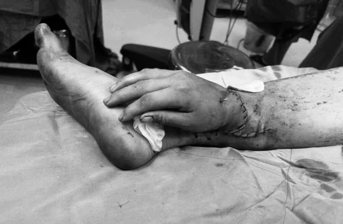 Bàn tay thai phụ được nối vào cẳng chân. Ảnh: Bệnh viện cung cấp |