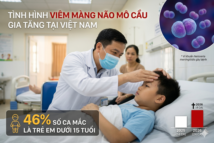 Dữ liệu thống kê từ Bộ Y tế cho thấy, từ tuần 1 đến tuần 14 của năm 2026, toàn quốc đã ghi nhận 24 trường hợp mắc viêm màng não mô cầu, trong đó có 4 ca tử vong. So với mức 14 ca mắc của cùng kỳ năm 2025, số liệu hiện tại phản ánh sự gia tăng đáng lưu tâm.
