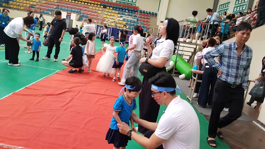| Các bậc cha mẹ phụ huynh của các em nhỏ học sinh cùng tham gia trong những phần thi thể thao, vận động thử thách... |