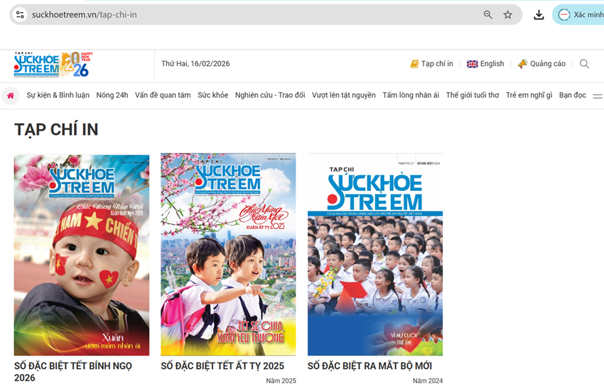 | Tạp chí Sức khỏe Trẻ em bản in các số đặc biệt được đăng tải trên Tạp chí Sức khỏe Trẻ em điện tử, tại tên miền: Tạp chí Sức khỏe trẻ em - https://suckhoetreem.vn |