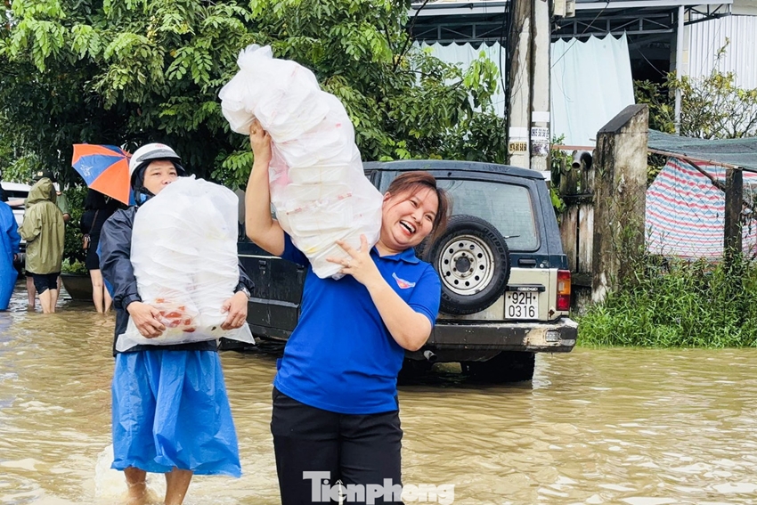 | Giữa dòng nước lũ bộn bề, hàng nghìn suất cơm, phần bún, phần cháo nóng hổi đã được chuyển đến tận tay những người dân vùng lũ trong thời điểm khó khăn. |