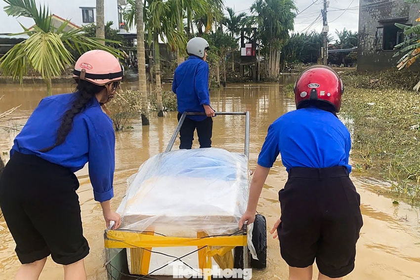 | Anh Lê Đình Lượng - Phó Bí thư Đoàn trường Đại học Đông Á, cho biết: "Bên cạnh các suất ăn, Đội SOS của trường đã được kích hoạt, triển khai hỗ trợ sinh viên và bà con kê dọn đồ đạc và di chuyển đến nơi tránh trú an toàn. Bên cạnh đó, đội còn tổ chức "cứu hộ" xe máy cho bà con ở các vùng ngập sâu trên địa bàn TP Huế và TP Đà Nẵng". |