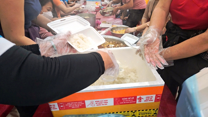 | Thức ăn được chế biến cẩn thận trước khi gửi đến người dân vùng lũ |