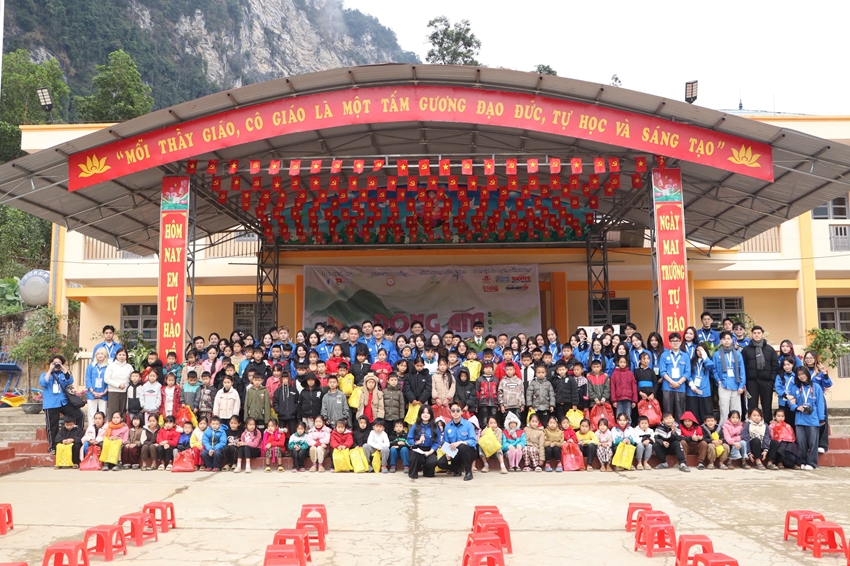 Mỗi khi mùa đông tràn về trên những rẻo cao Tuyên Quang, cái rét cắt da cắt thịt cùng màn sương dày đặc lại phủ lên cuộc sống của bao mảnh đời còn nhiều thiếu thốn. Thấu hiểu và sẻ chia với những khó khăn ấy, vừa qua, Câu lạc bộ Tình nguyện Trường Đại học Luật Hà Nội đã tổ chức thành công chương trình “Đông Ấm 2026 - Lửa hồng biên giới” tại địa bàn xã Bạch Ngọc, tỉnh Tuyên Quang. Chương trình diễn ra trong 2 ngày (24/01/2026 - 25/01/2026) với sự tham gia của 60 sinh viên tình nguyện, cùng sự đồng hành của chính quyền địa phương, Ban Giám hiệu, thầy cô giáo và 99 em học sinh Trường PTDTBT Tiểu học và THCS Bạch Ngọc.