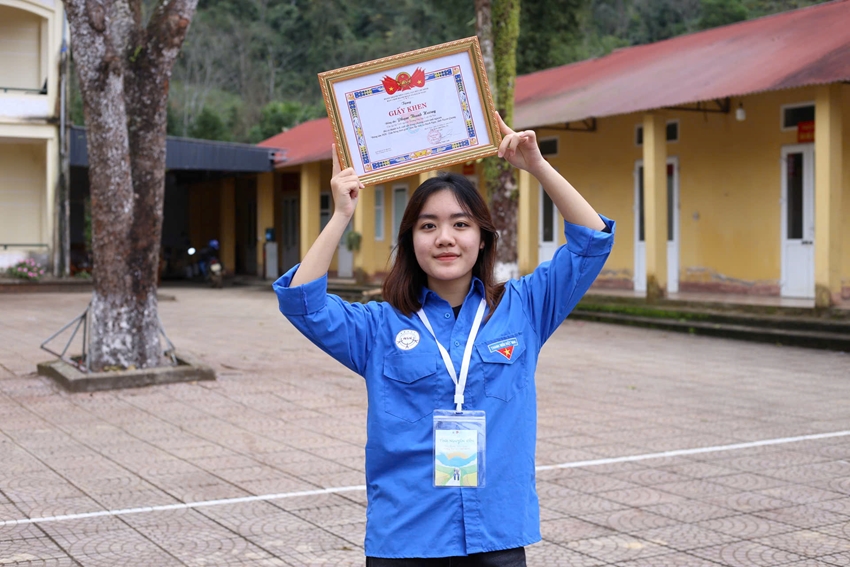 | Bạn Phạm Thanh Hương (tình nguyên viên tham gia) chương trình “Đông Ấm 2026 - Lửa hồng biên giới” chia sẻ. (Ảnh: CLB) |