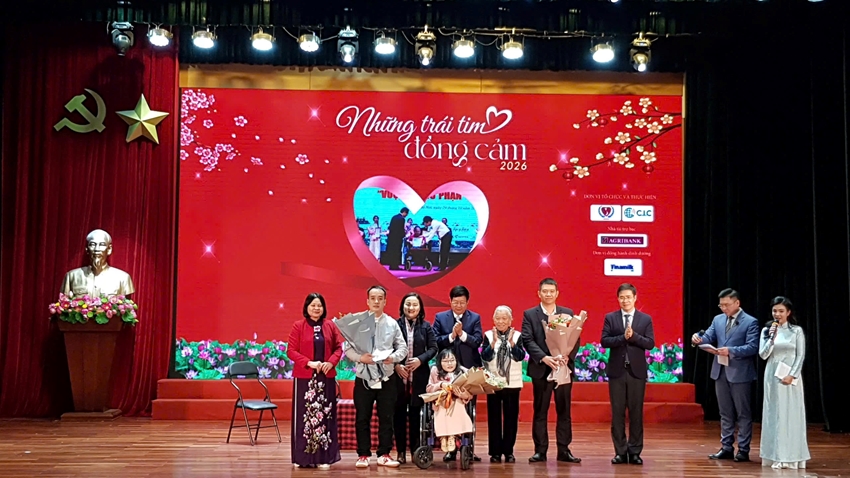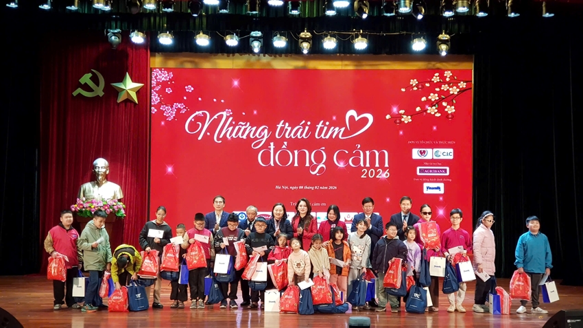 Chiều 8/2, tại Trung tâm Văn hóa - Thông tin và Thể thao Đống Đa (Hà Nội), Hội Bảo trợ Người khuyết tật và Trẻ mồ côi Việt Nam phối hợp với Công ty cổ phần Truyền thông Quốc tế C.I.C, đã tổ chức chương trình giao lưu nghệ thuật “Những trái tim đồng cảm” năm 2026. Đồng thời, Ban tổ chức đã trao quà Tết cho các em nhỏ có hoàn cảnh khó khăn nhân dịp đón Tết Nguyên đán Bính Ngọ sắp đến.