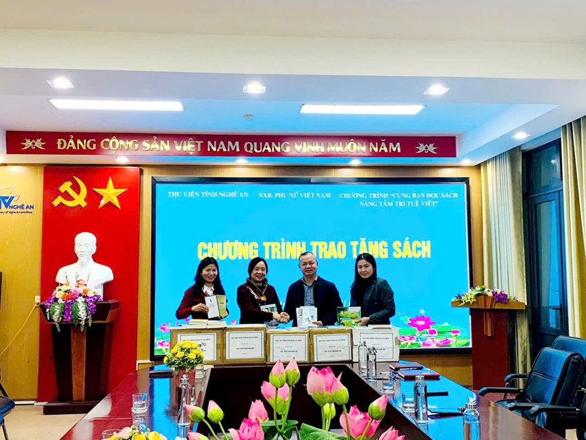 Tham gia chuyến công tác lần này còn có Bà Hoa Phượng, Giám đốc Nhà xuất bản Phụ Nữ Việt Nam. Với vai trò là đơn vị đồng hành, Nhà xuất bản Phụ Nữ Việt Nam đã trao tặng hàng trăm cuốn sách ý nghĩa cho các điểm trường, trại giam và Thư viện tỉnh, góp phần làm giàu thêm nguồn tài nguyên tri thức cho địa phương.