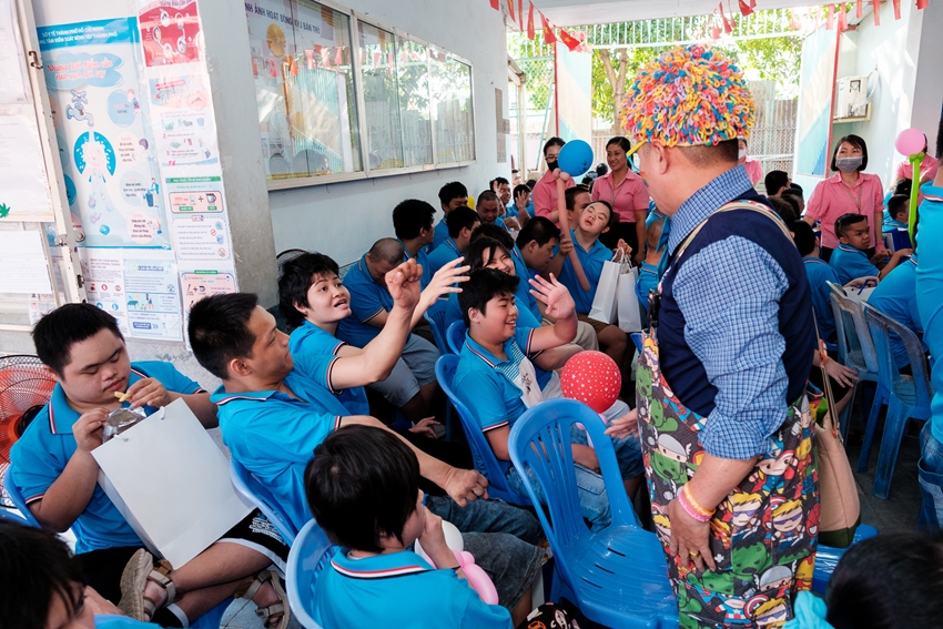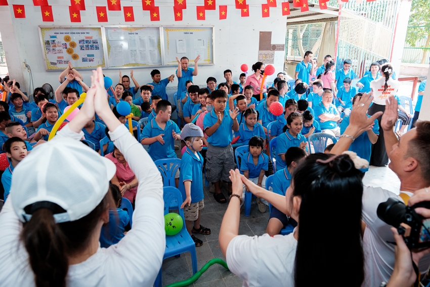 Bên cạnh phần biểu diễn, các nghệ sĩ còn dành thời gian đi đến từng góc, trò chuyện, ôm ấp và lắng nghe các em. Đối với những trẻ khuyết tật nặng, sự thăm hỏi ân cần, cái chạm nhẹ nhàng trên vai không chỉ là sự an ủi, mà còn là lời khẳng định mạnh mẽ: Các con không hề đơn độc; cộng đồng luôn ở bên.