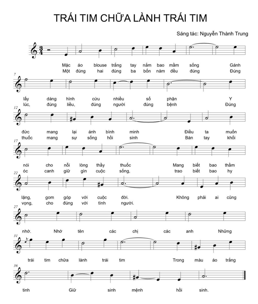 Nói cách khác, nhạc sĩ Nguyễn Thành Trung đã không chỉ viết một bài hát hay, mà còn tạo nên một tác phẩm mang giá trị tư tưởng, nhắc chúng ta rằng trong mọi tiến bộ của khoa học, yếu tố làm nên vẻ đẹp cao quý nhất của y học vẫn luôn là tình người.