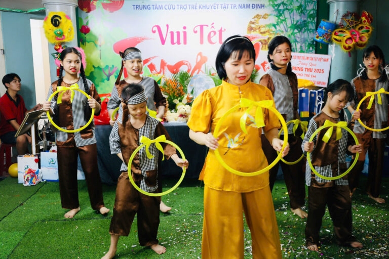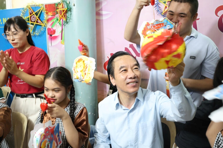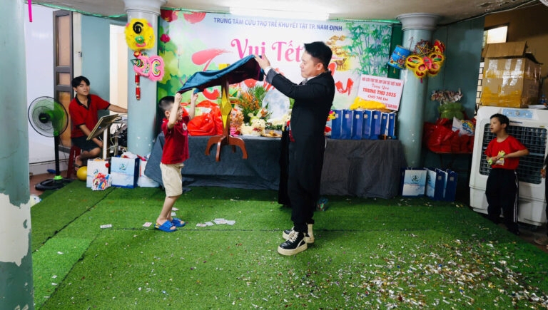 Tham gia Chương trình “Tết Trung thu 2025” với trẻ khuyết tật tại Trung tâm Cứu trợ trẻ em tàn tật Nam Định, có 75 trẻ em khuyết tật có hoàn cảnh đặc biệt đang được học tập, nuôi dưỡng tại Trung tâm Cứu trợ trẻ em tàn tật Nam Định. Trong chương trình hôm nay, các cháu thiếu nhi, trẻ em được thưởng thức xem chương trình văn nghệ, với nhiều tiết mục đặc sắc, hấp dẫn, do cô giáo và trẻ khuyết tật học tập tại Trung tâm biểu diễn. Các em được cùng giao lưu với “chị Hằng, chú Cuội”; xem múa lân, ảo thuật, tham gia trò chơi đố vui có thưởng và phá cỗ Trung thu vui vẻ, ý nghĩa...