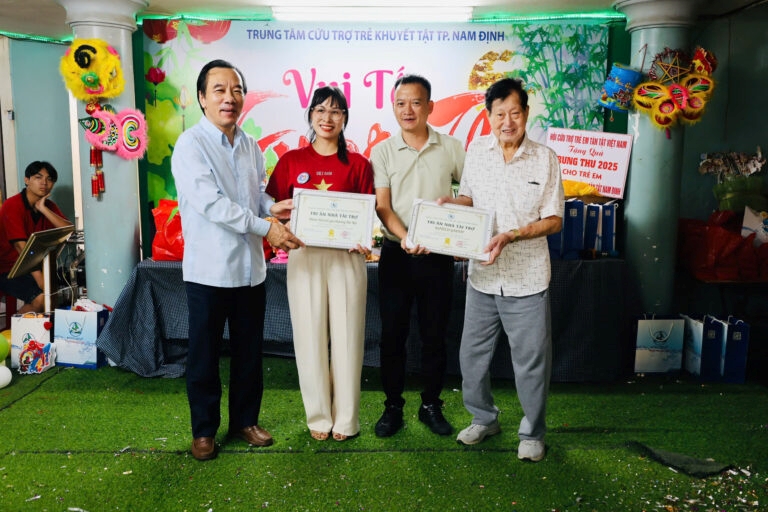 Nhân dịp này, Hội Cứu trợ trẻ em tàn tật Việt Nam đã trao tặng 5.000.000đ (Năm triệu đồng) và 30 suất bánh Trung thu cho các cháu thiếu nhi, trẻ em của Trung tâm Cứu trợ trẻ em tàn tật Nam Định.