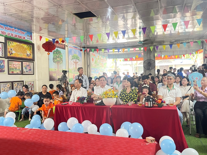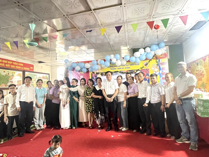 Đông đảo nhân viên, người dân, các trẻ em tại Trung tâm trợ giúp xã hội trẻ em khuyết tật Hy vọng. |
