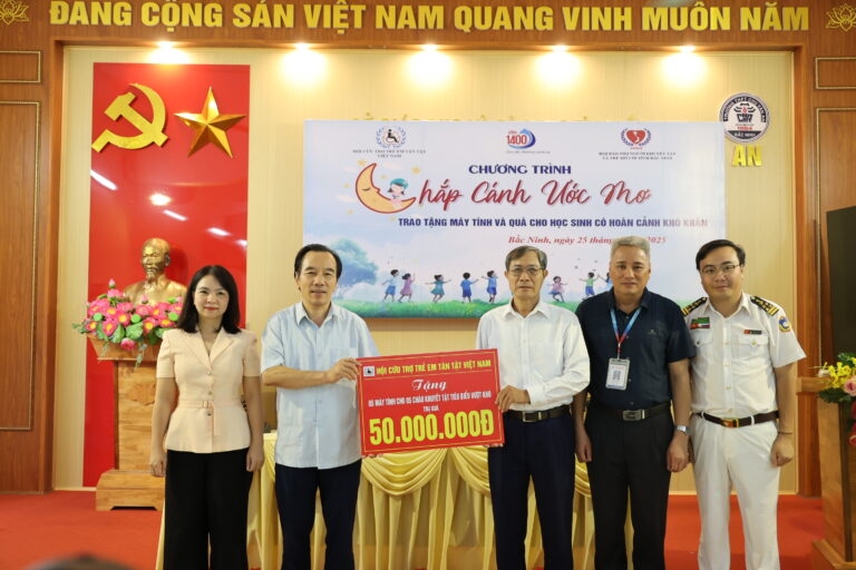 TS. Ngô Sách Thực - Chủ tịch Hội Cứu trợ trẻ em tàn tật Việt Nam đã trao tặng cho 05 em, mỗi em 10 triệu đồng, tổng số tiền là 50.000.000đ (Năm mươi triệu đồng) để gia đình và nhà trường mua máy tính cho các em. Số tiền trên đã được chuyển đến Trường THPT Chu Văn An, Trường DTNT THPT và THCS Nguyễn Tất Thành; THCS Kiên Lao số 2 và THCS Giáp Sơn (tỉnh Bắc Ninh), Nhà trường đã cùng gia đình mua máy tính mới và trao cho từng em. Các em, gia đình và Nhà trường rất vui mừng và cảm ơn trước sự quan tâm của Hội Cứu trợ trẻ em tàn tật Việt Nam, Hội Bảo trợ người khuyết tật và trẻ mồ côi tỉnh Bắc Ninh. Mỗi em đều hứa sẽ cố gắng học tập, là con ngoan, trò giỏi để trở thành công dân tốt.