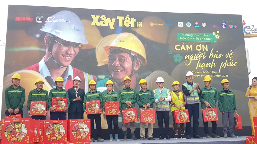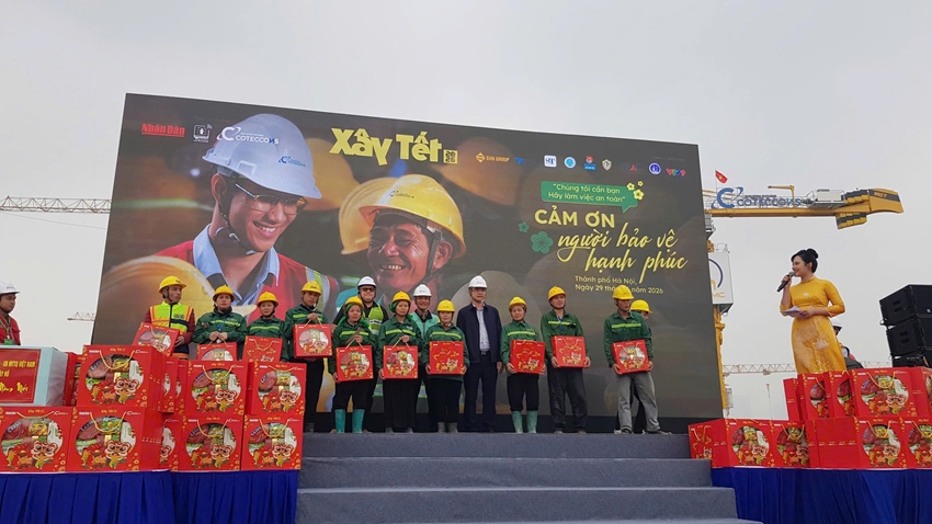 Sáng ngày 29/1/2026, Báo Nhân Dân phối hợp cùng Công ty Cổ phần Xây dựng Coteccons tổ chức Chương trình “Xây Tết 2026” dành cho công nhân xây dựng đang làm việc tại hai dự án gồm Dự án Nhà hát Ngọc trai và Công viên văn hóa Nghệ thuật chuyên đề; Dự án Cải tạo, nâng cấp và xây dựng mới Khu nhà khách Hồ Tây, với sự tham gia của khoảng hơn 1.100 công nhân tại các dự án này.