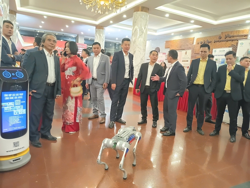 | Các đại biểu trải nghiệm các sản phẩm công nghệ, thông minh, ứng dụng trí tuệ nhân tạo Ai,... do doanh nghiệp Việt Nam sản xuất, phát triển. (Ảnh: Đại Lộc) |