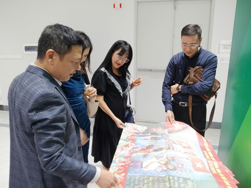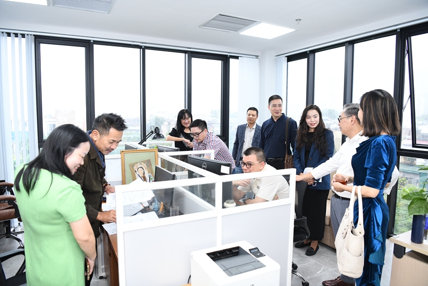 | Bà Nguyễn Hoàng Thảo Ngọc (áo vét xanh đậm) - Trưởng Ban điều hành Mạng lưới sáng tạo Nội dung số vì trẻ em (DCCC), cùng với các thành viên DCCC thăm quan thực tế phòng sản xuất nội dung, mỹ thuật tại tòa soạn của Báo TNTP&NĐ. |