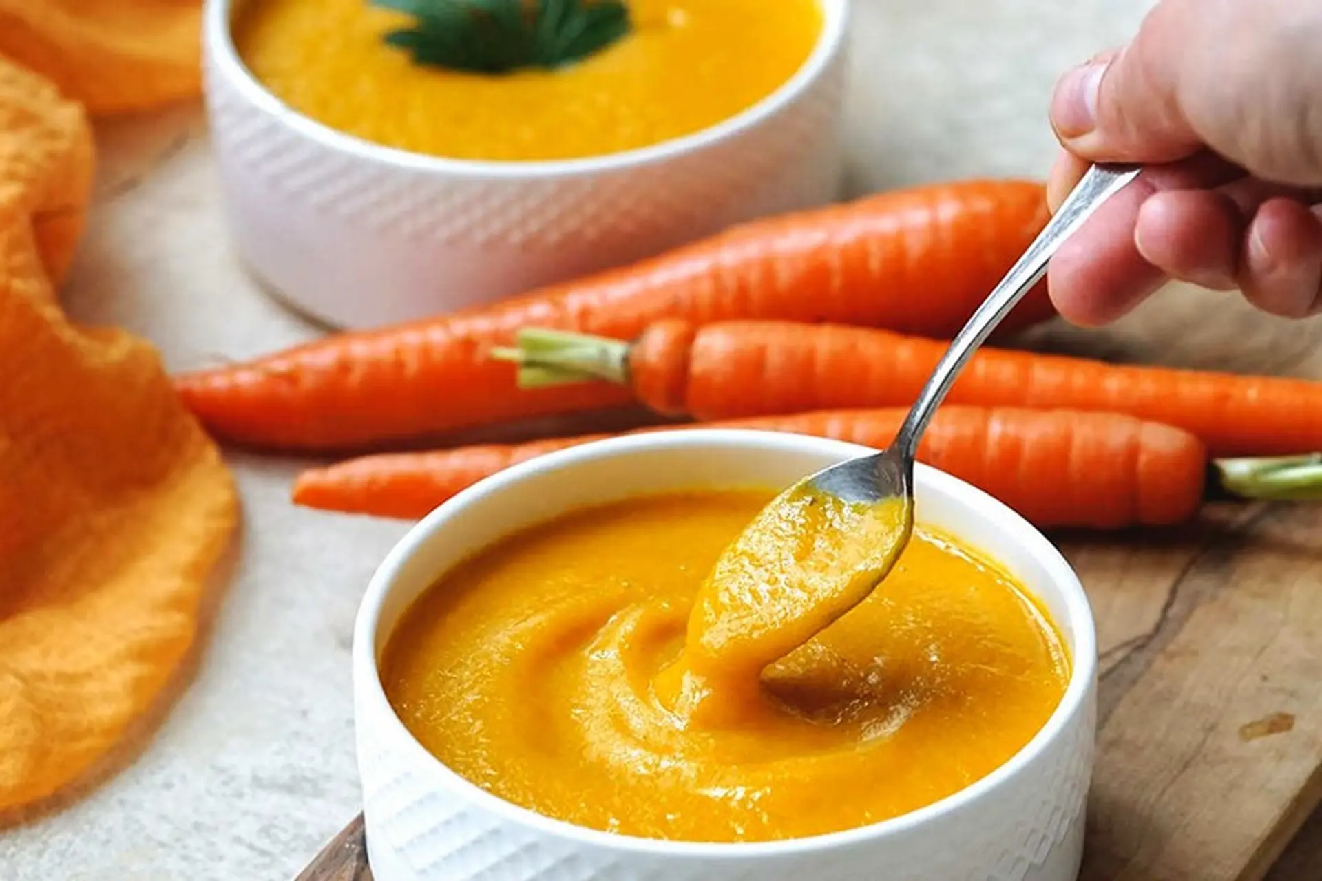 - Vitamin và khoáng chất: Cà rốt, bí đỏ, các loại rau xanh mềm, chuối, táo.