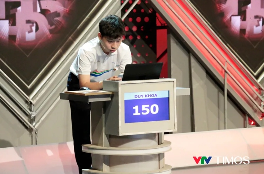 | Duy Khoa tại cuộc thi trong năm của Đường lên đỉnh Olympia năm 2025. (Ảnh: VTV) |