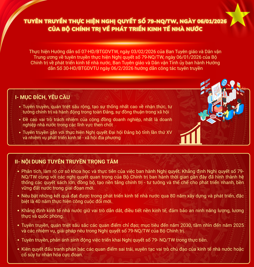 | Đẩy mạnh tuyên truyền thực hiện Nghị quyết số 79-NQ/TW ngày 06/01/2026 của Bộ Chính trị về phát triển kinh tế nhà nước... (Ảnh minh họa) |
