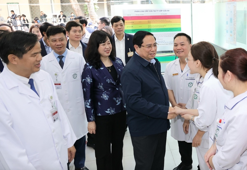 Thủ tướng Phạm Minh Chính và Bộ trưởng Bộ Y tế Đào Hồng Lan thăm, chúc Tết và động viên nhân viên y tế tại Bệnh viện Bạch Mai