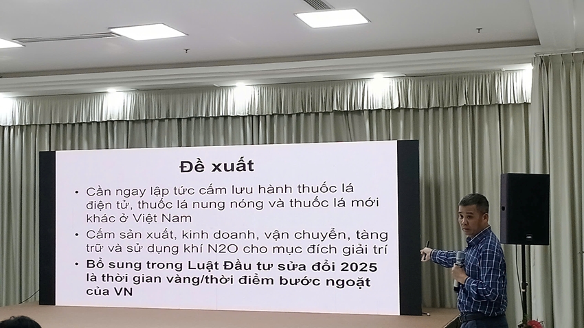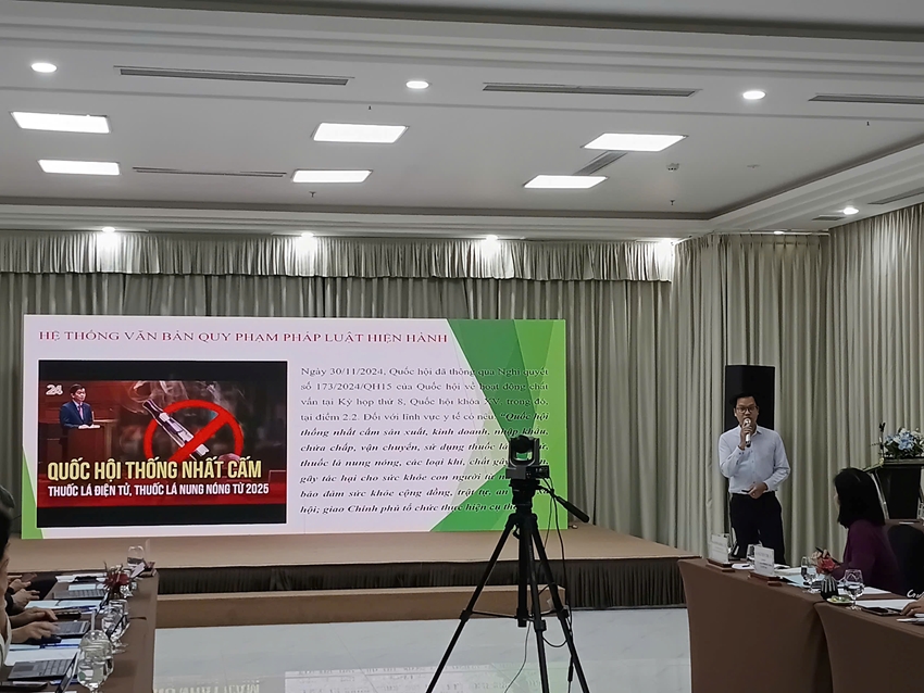 Trình bày tại Hội thảo, ông Vũ Trung Hiếu – Đại diện Vụ Pháp chế (Bộ Y tế) cho biết: Nghị quyết số 173/2024/QH15 của Quốc hội về hoạt động chất vấn tại Kỳ họp thứ 8, Quốc hội khóa XV quy định cấm toàn diện sản phẩm thuốc lá điện tử, thuốc lá nung nóng, được thông qua ngày 30/11/2024 và có hiệu lực từ ngày 1/1/2025. Tuy nhiên, cần thể chế hóa các quy định tại Nghị quyết này trong Luật Phòng, chống tác hại của thuốc lá. Đồng thời, hiện nay chưa có định nghĩa thế nào là "thuốc lá điện tử", "thuốc lá nung nóng" để làm cơ sở cho cơ quan chức năng xử lý vi phạm.