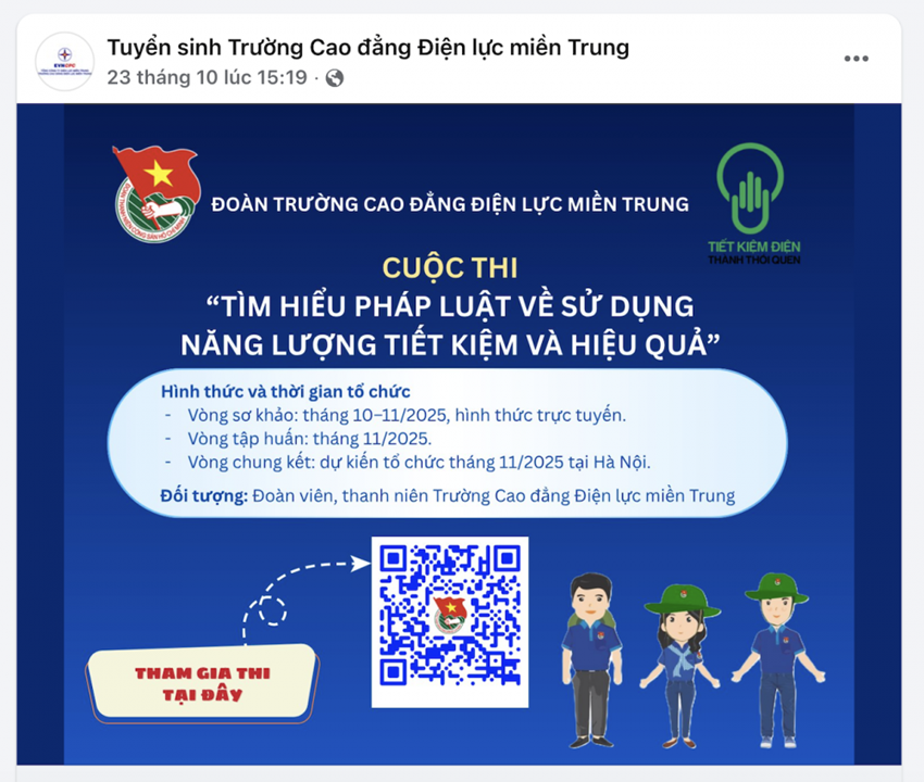 | Đoàn Trường Cao đẳng Điện miền Trung kêu gọi các đoàn viên tham gia Cuộc thi trên fanpage của nhà trường. |