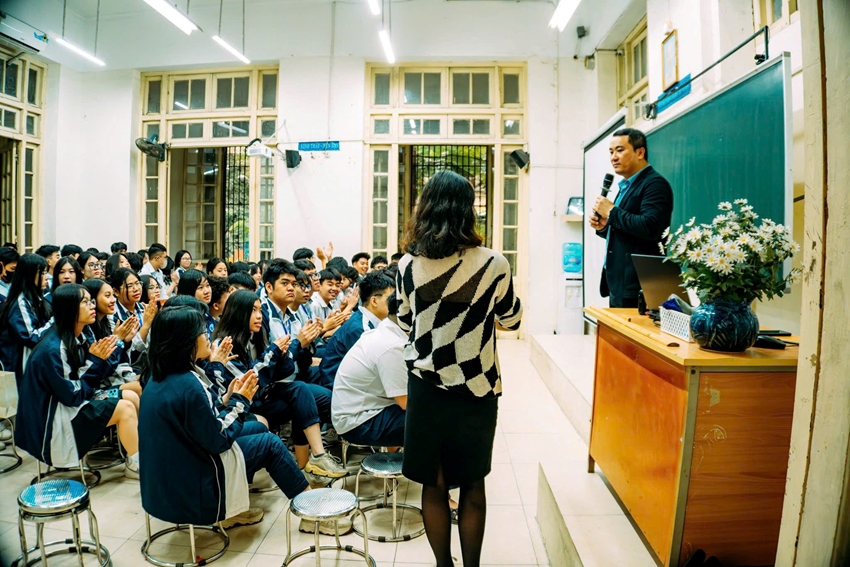 | Tiến sĩ Lý Trọng Đại tham gia hoạt động truyền tải thông tin về tác hại của thuốc lá điện tử cho các em học sinh. |