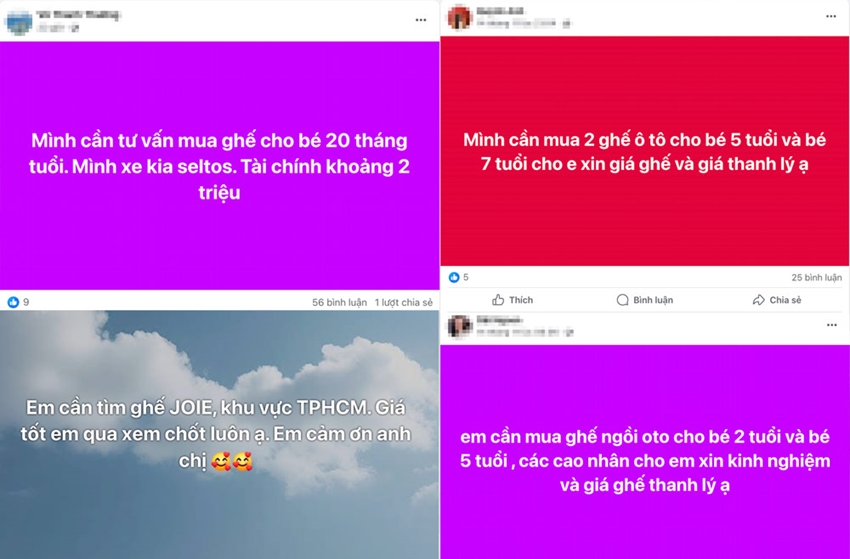 Ngoài các cửa hàng bày bán, nhiều bậc phụ huynh lựa chọn mua ghế thanh lý để tối ưu chi phí. Trên các hội nhóm mạng xã hội, nhiều khách hàng tìm chọn các loại ghế ngồi ô tô cũ giá khoảng 2 triệu đồng, hoặc tìm thuê do nhu cầu sử dụng không kéo dài. Giá thuê dao động từ 150.000 - 300.000 đồng/ngày hoặc 550.000 - 900.000 đồng/tuần tùy loại ghế.