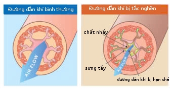 Hãy tưởng tượng tiểu phế quản của trẻ dưới 1 tuổi chỉ nhỏ như một đầu tăm (vài milimet). Khi lớp niêm mạc sưng nề cộng với sự xuất hiện của các nút nhầy kể trên, đường thở của bé sẽ bị bít tắc gần như hoàn toàn. Đây chính là lý do một đứa trẻ đang chơi đùa có thể chuyển sang tình trạng khó thở nhanh chóng.