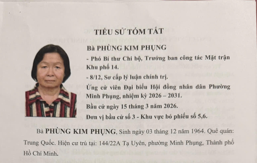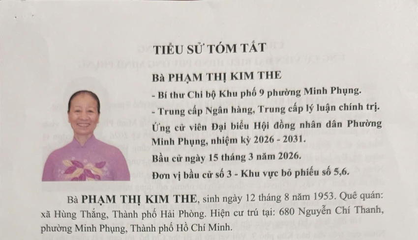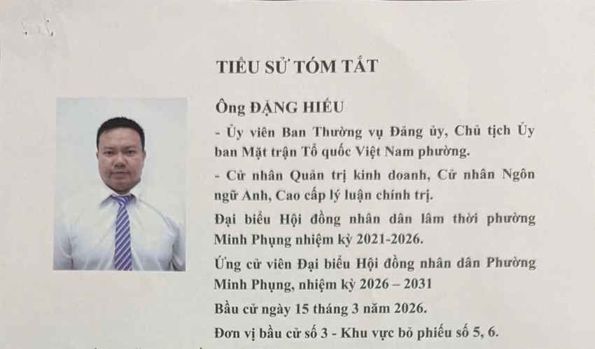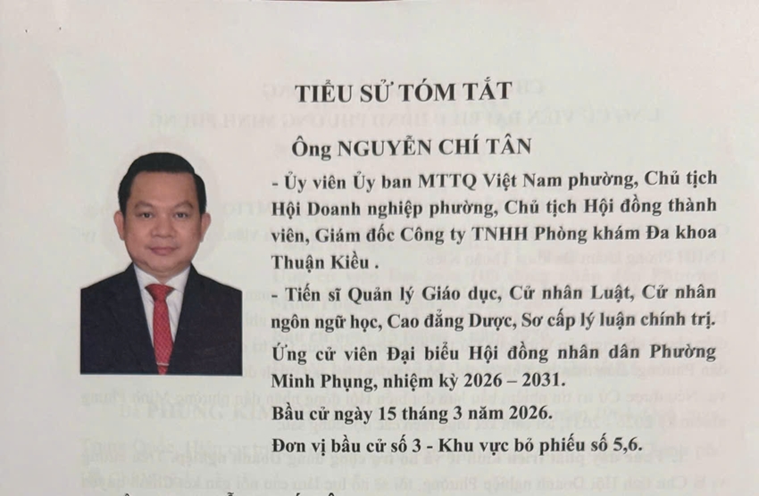 (SKTE) - Ngày 5/3, Ban Thường trực Ủy ban MTTQ Việt Nam phường Minh Phụng (TPHCM) đã tổ chức Hội nghị tiếp xúc cử tri với những người ứng cử đại biểu Hội đồng nhân dân (HĐND) phường khóa I, nhiệm kỳ 2026 – 2031 tại Đơn vị bầu cử số 3. Tại hội nghị, cử tri địa phương đã bày tỏ sự đồng thuận cao và gửi gắm nhiều kỳ vọng thiết thực đến các ứng cử viên.