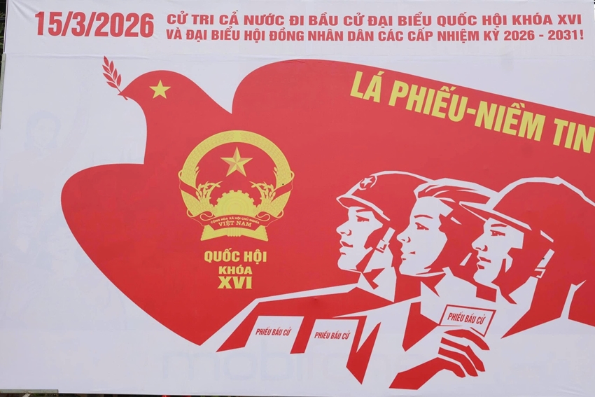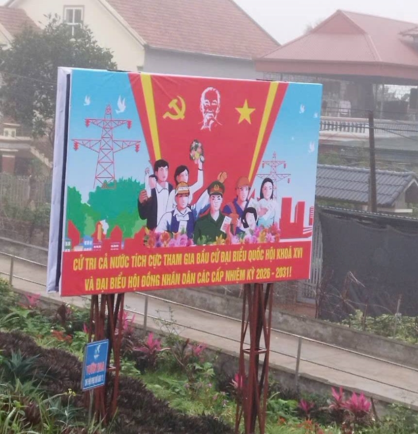 | Các khẩu hiệu cổ động công tác bầu cử đại biểu Quốc hội khóa XVI và đại biểu Hội đồng nhân dân các cấp nhiệm kỳ 2026–2031. |
