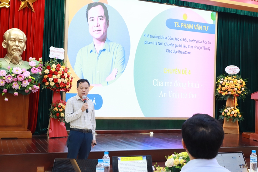 | Tiến sĩ Phạm Văn Tư, Phó Trưởng khoa Công tác xã hội, Đại học Sư phạm Hà Nội. Chuyên gia trị liệu tâm lý Giáo dục Brain Care trao đổi chuyên đề Cha mẹ đồng hành - An lành tuổi thơ |