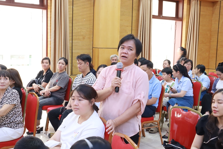 | Phụ huynh chia sẻ cùng các chuyên gia về các vấn đề mà các con đang gặp phải tại Hội thảo. |